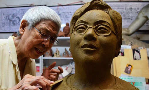 2011年9月14日,雕塑家閆玉敏正在創(chuàng)作作家石楠塑像。